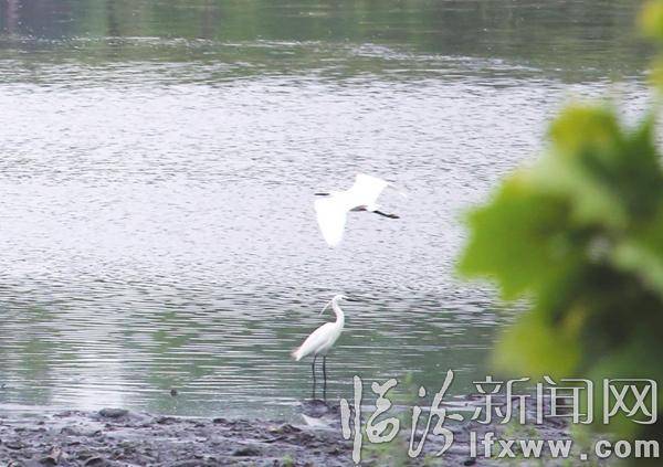 临汾新闻网讯 日前,在汾河襄汾县襄陵段的一片滩涂上,数十只白鹭和野鸭嬉戏觅食。这些白鹭时而在滩涂上悠闲漫步、打闹,时而飞上蓝天,白色的身影犹如片片飘雪。
