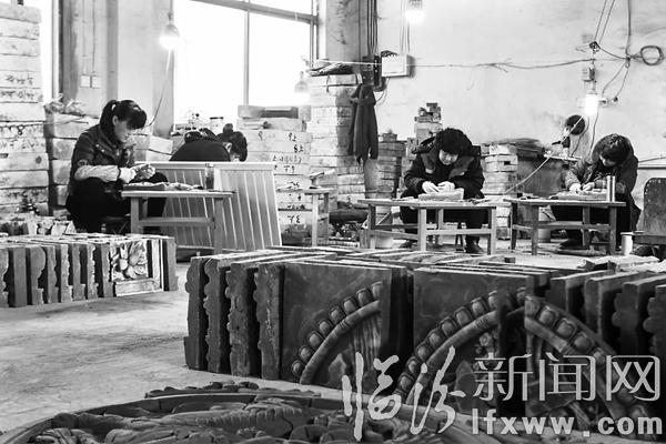 临汾新闻网讯 近日,在襄汾县赵康镇牛席村仿古工艺厂,工人师傅们正在认真制作砖雕作品。该厂生产制作的砖雕做工细腻、构图精美、栩栩如生,远销北京、广东等地。图为砖雕师傅正在加工砖雕。