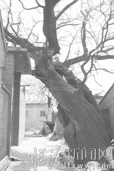 记者观察到,该树树围4米左右,树高17米左右。由于太过苍老,饱经风霜,主枝一枯两折,树干已中空,但是它发新枝、吐新叶,表现出了顽强的生命力。