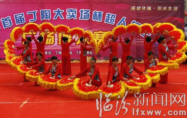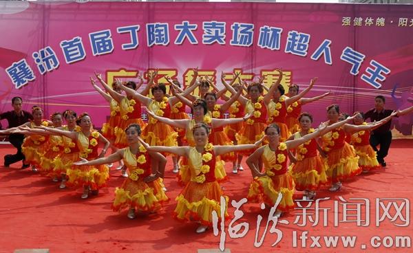 临汾新闻网讯 6月21日,在襄汾县“超人气王”杯丁陶大卖场全民广场舞大赛上,参赛队伍在进行比赛。此次全民广场舞大赛采取广场健身操这种大众普遍喜爱的活动形式自愿报名参加,旨在以健康的体魄,优美的舞姿,丰富群众文化生活。