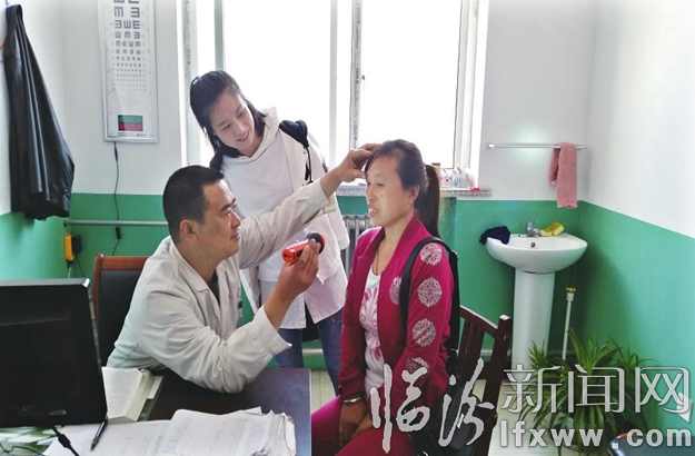 临汾新闻网讯 襄汾县南贾镇卫生院是一所以眼科为特色的综合性卫生院,月均门诊量2600人次。该院把开展“三好一满意”活动作为“为民服务创先争优”的具体内容,改进服务态度,优化服务流程,提升服务水平,获得周边村民的好评。图为该院院长王伟栋在为村民检查眼疾。