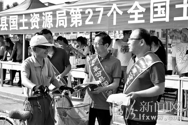 临汾新闻网讯 6月25日是第27个全国土地日,今年的主题是土地与生态文明建设。襄汾县精心安排,积极组织,通过多种形式开展土地资源国情国策、加强耕地保护和土地整治、地质灾害防治等方面的宣传,营造全民珍惜土地的良好氛围。图为襄汾县国土资源部门工作人员正在县城中心广场开展宣传。 焦玉龙 摄
