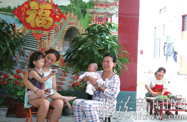 坐在敞亮的院子里老少其乐融融村民赵艳梅说“村里的环境特别好水电路都通了年轻人都回村打工, 幼儿园、 活动中心一应俱全。 你看, 我们的生活多美好。”