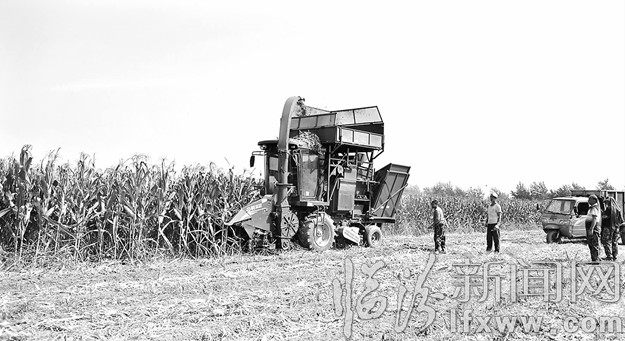 临汾新闻网讯 秋收时节,襄汾县各地收割机来回穿梭于田间收获玉米。他们在收获玉米的同时,将玉米秸秆机械化粉碎,送往各类养殖场,为养殖户储青备料提供了充足原料,实现了秸秆的有效再利用,既生态又环保。图为联合收割机正在襄汾县邓庄镇广奇农业示范园作业。