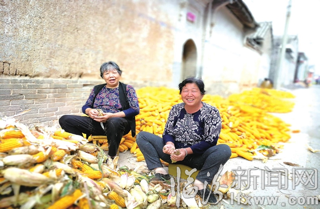 临汾新闻网讯 近日,襄汾县汾城镇南膏腴村农民张心稳在家门口和邻居一边说笑一边扒玉米皮。她指着身后的玉米堆说:这都是我家的,村里谁家有事都来积极帮忙,大家都很热心。今年收成不错,光玉米就收入三四万元,村里这几年变化挺大的,农家庭院焕然一新,农民生活稳定,民风和谐。靠勤劳致富,日子越来越好了!”记者 刘静 摄