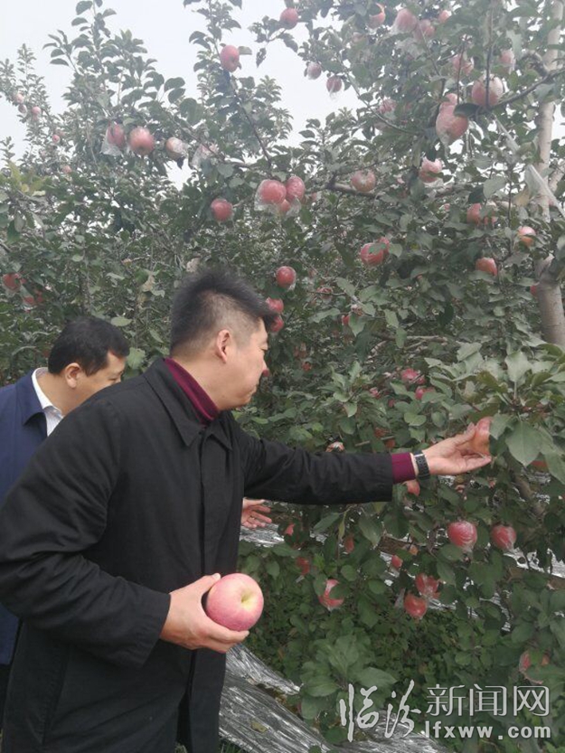 襄汾县邮政公司经理、电商管理协会会长崔烨在选购采摘苹果