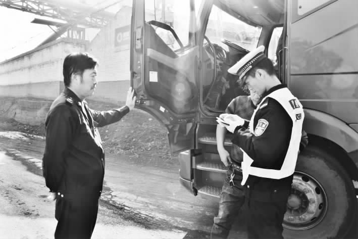临汾新闻网讯 入冬以来,襄汾县组建工商质监、环保、交通运输、交警四部门联合执法队伍,成立了4个煤炭市场整顿稽查队,采取设卡检查和巡回检查的办法,对全县范围运输散煤车辆进行全天候检查,严禁劣质散煤进入该县。图为该县交警和交通运输执法人员联合对过往散煤运输车辆进行检查。 王璐 摄