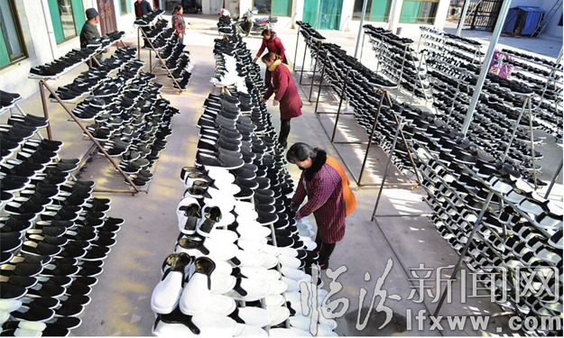 临汾新闻网讯 近年来,襄汾县汾城镇南西城村黄河坊千层底布鞋厂积极挖掘传统手工布鞋制作技艺,组织周边村妇女闲散劳动力进行千层底布鞋制作,直接带动就业300余人,为他们致富找到了一条新路径,产品销往北京、河北各地。(焦玉龙)