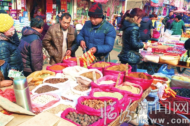 随着党中央优农惠农政策不断加大和农民生活水平的不断提高,农村集贸市场的商品种类日益丰富,干果、肉食、灯笼、对联、新衣裳等一应俱全。时近春节,邓庄集、乔李集、泊庄集、贾得集等临汾城区周边的几个集市,迎来了腊月里的年货旺季,极富新年气息的集贸市场吸引了附近十里八村的村民乃至众多市民逛集购物、体验年味,农村大集成了名副其实的“黄金集”。