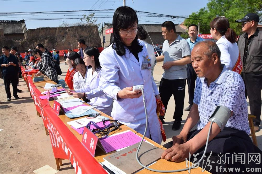 “我刚才检查,发现您的脊柱旁长了个东西,建议您住院治疗”县医院普外科主任赵全平一边查看病情,一边叮嘱咨询的村民张金贵注意事项。这次“三下乡”活动县医院义诊队由包括赵全平在内的5名医生、1名护士和1名营养师组成,一方面是送医下乡,给老百姓进行义诊,另一方面也进行健康保健宣传,普及冠心病、糖尿病、高血压等多种疾病的防治知识。“大夫,我这个血压比较高,除了吃降压药,还有需要注意的吗”“先给你量量血压”62岁刘保龙高兴地说,家门口就能免费检查身体,希望能够多举办这样的活动。