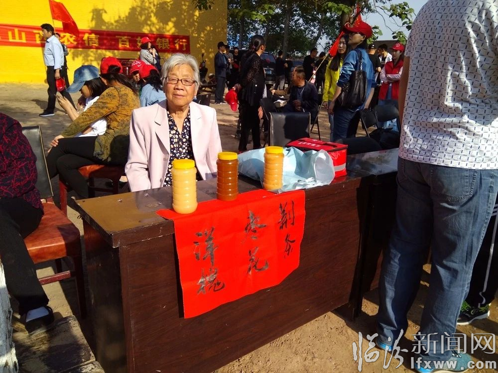 幸福生活比蜜甜,各位路过的跑友,尝尝我的槐花蜜。沿路群众也拿出自家的特色农副产品,也来蹭蹭徒步节的热度。