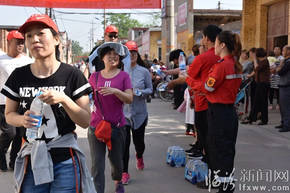 早晨8点50分,随着县武装部政委张杰一声发令枪响,2000多名徒步爱好者从南贾镇大柴村西门口出发,一路前行。