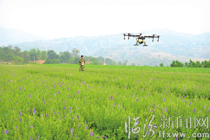 临汾新闻网讯 近日,在襄汾县大邓乡裴家庄中药材基地内,药农正在进行无人机药物病虫害防治作业。近年来,襄汾县着力建设东西两山、南贾和汾阳岭周边4大中药材种植产区,全县中药材种植面积稳定在10万亩左右,走出了一条发展中药材致富之路。