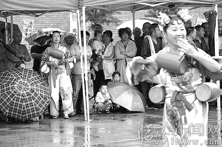 又一节目开始,偌大的雨滴顷刻间淋湿了演职人员的衣衫、弄花了她们精致的妆容。而市红杏艺术团现场所有的演职人员并未因此而怯场、退缩,反而更激发了她们的表演热情。节目还未结束,台下不断传来响亮的鼓掌声。这儿一次次热烈的掌声是村民对全场演职人员的肯定,更是一份触人心弦的感动。