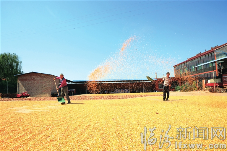 临汾新闻网讯 9月23日是第一个中国农民丰收节。今年,襄汾县玉米喜获丰收,广大农民利用晴好天气,在房前屋后抓紧晾晒玉米。图为该县西贾乡西彭村村民在晾晒玉米。