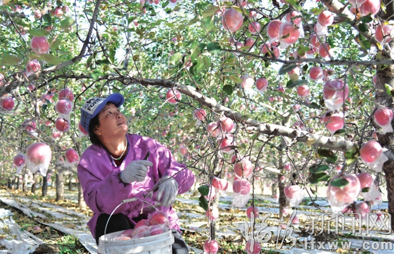 临汾新闻网讯 近日,襄汾县景毛乡申村的无公害绿色苹果生产基地的苹果园里,果农正忙着采摘,红红的苹果映衬出果农丰收的喜悦。