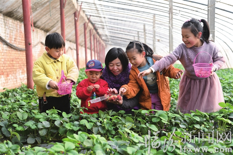 临汾新闻网讯 近日,襄汾县邓庄镇广奇农业生态园举办以“甜在春天里,缤纷草莓节”为主题的采摘节,引来一拨又一拨的游客。大家在冬日里享受着大棚里的春意,体验采摘的乐趣。图为游客在品尝刚刚采摘的草莓。