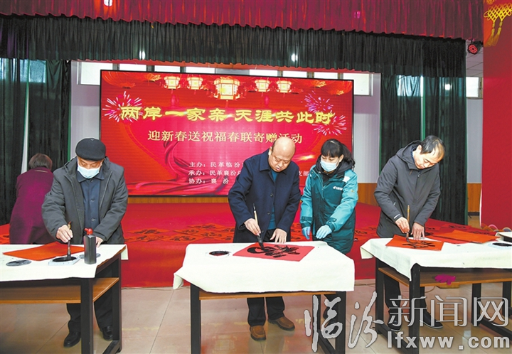 临汾新闻网讯 1月5日,襄汾县文化馆内民革临汾市委会襄汾总支、洪洞支部、曲沃支部的书法爱好者将精心创作的500副春联、300个福字打包邮寄发往台湾。这项活动已经连续开展了8年,共寄赠台湾同胞春联2000副、福字1200个,受到了台湾同胞的热烈欢迎。