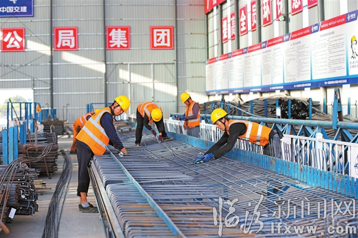 临汾新闻网讯 日前,襄汾县国道108线过境改线项目1#预制梁厂区内一派紧张忙碌、井然有序的生产场面。中交一公局集团的工人们严格按照图纸要求,在多个工作区域内同步施工,开展钢筋加工、捆绑焊接、制模浇筑等一系列作业。
