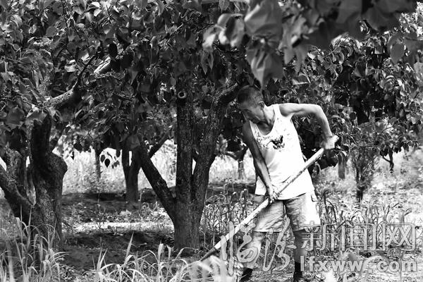 临汾新闻网讯 近日,隰县各地普遍降雨,旱情得到了缓解。农民抓住有利时机,一边对果树进行管理,一边补种秋作物,力争把旱灾造成的损失降到最低程度。图为隰县龙泉镇西坡底村村民正在整理果园。 郝微微 摄