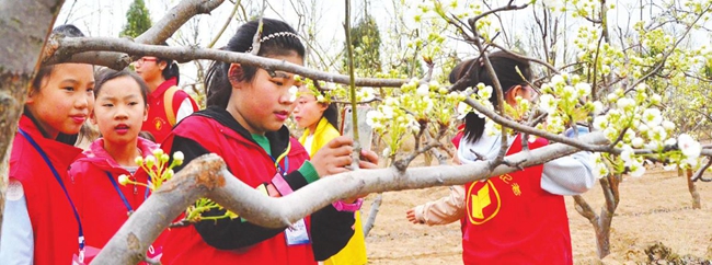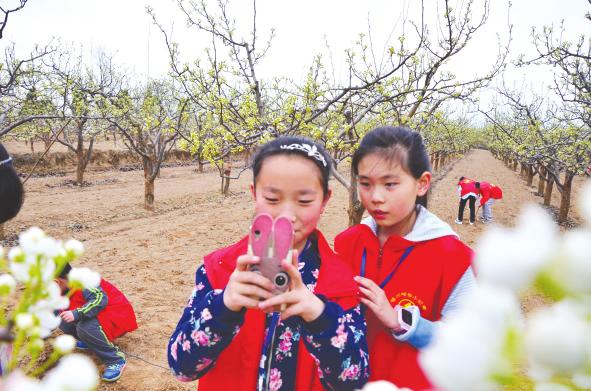 梨园里,树梢上,有含苞待放的花蕾,还有竞相绽放的花朵。小记者们虽然没有感受到“千树万树梨花开”的盛景,但赏花兴致丝毫未受影响。他们在花海中自由奔跑、尽情嬉戏,欢笑声、赞叹声此起彼伏。玩得累了,他们拿起手机,相互为对方拍照留念,相约漫山梨花开放之时再来观光采风。
