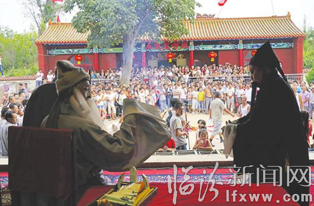 当天是农历六月廿七,上庙的主战场在昕水河西阳德垣上阳德村,该村请来了吕梁柳林同心晋剧团。除了鼓声外,两个山西地方剧种隔着昕水河在两个垣上激情对唱。