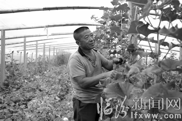 图为卫家峪村村民正在管护大棚。