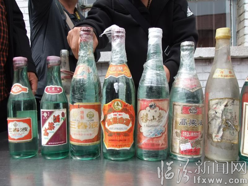 这些老酒均生产于上世纪七八十年代,共有白酒十余种,而且产地均为临汾,既有襄汾县食品饮料厂生产的高粱液、安泽县和川酒厂生产的高粱白酒、翼城国营酿酒总厂生产的二锅头酒、国营山西永和酒厂生产的楼山春,也有吉县国营酒厂生产的五龙液、浮山国营酒厂生产的二峰山春液、隰县午城酒厂生产的高粱酒、三春液等。这些老酒的包装已经破烂不堪,不少酒还蒙上了厚厚的灰尘。