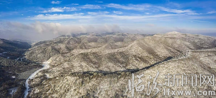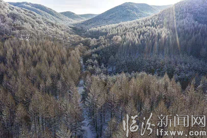 临汾新闻网讯 近日,寒潮来袭,国家森林康养基地、隰县紫荆山迎来了今冬第一场雪。山林、森林都被雪花点缀,远远望去,就像一幅天然国画,美不胜收。