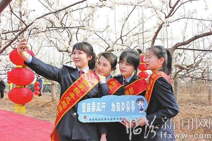 临汾新闻网讯 隰县举办梨花节期间,国家税务总局隰县税务局组织工作人员走进主会场阳德村,开展税收宣传活动。同时通过拍短视频等形式,引导公众呵护花木、爱护环境。(文风洲)