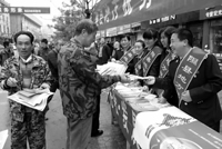 近日,隰县地税局走上街头开展税法宣传,零距离与群众交流,向群众发送税收宣传资料,拉近了干群关系。 石书民 摄
