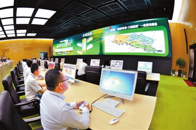 鄂尔多斯市鄂托克前旗大数据中心,工作人员正在认真盯盘。该中心覆盖全旗的4个镇区和18个集中居住的农牧社区,以大数据应用引领各项事业统筹发展。内蒙古客户端记者 金泉 摄