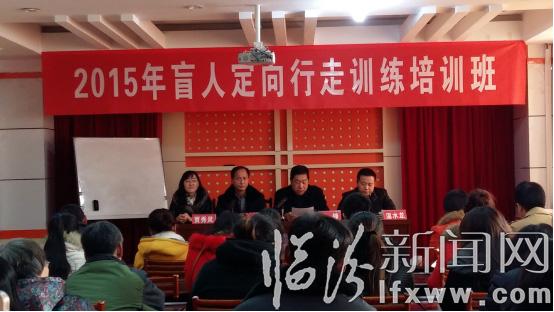 12月17日上午在粮茂宾馆会议室举办了2015年盲人定向行走训练培训班,全县部分乡镇的专职委员、康复协调员和视力残疾人及家属共40余人参加了培训.县残联理事长陈锋出席了开班仪式并讲话,他指出举办这次盲人定向行走训练培训班目的就是为了更好地普及盲人定向行走知识,提高视力残疾人独自出行的能力,建立一支盲人定向行走训练技术骨干队伍,提升各专职委员、康复协调员为盲人提供定向行走训练服务的能力和水平,让更多盲人掌握定向行走技能,走出家门,参与社会生活,共享社会物质文化成果,为实现残疾人“人人享有康复服务”的目标奠定基础。培训内容由参加全省盲人定向行走师资培训班的优秀学员县残联康复股股长闫海梅授课,采取教师授课和实地操作练习相结合的方式。就掌握盲人定向行走的意义和现实生活中的盲道、相关交通知识、正确行走姿态训练、异常步态的矫正、避险及应急防卫等一系列的相关知识进行了详细的讲解。还手把手教盲人朋友们上下楼梯,在大街盲道上进行了实地盲杖二点式行走练习。通过培训,让参训盲人朋友掌握运用定向行走技术,学会独立、安全、自如行走的有效方法,使他们自信地走出家门,走向美好的人生。培训结束后,还给每位受训盲人及家属赠送了盲杖和其他盲人用品共70余件。
