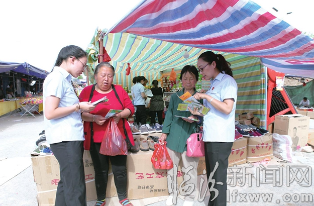 临汾新闻网讯 5月11日下午,在乡宁县城俗称“四月八”的集市上,县法院的法官们来到集市上开展普法宣传活动,热情地为过往群众发放普法宣传资料,悉心倾听群众呼声,耐心细致地为群众答疑解惑。