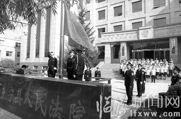 临汾新闻网讯 日前,乡宁县法院党组书记、院长孙立杰带领全体党员干警在雄壮激昂的国歌声中,向冉冉升起的国旗行注目礼,并进行了集体宣誓。