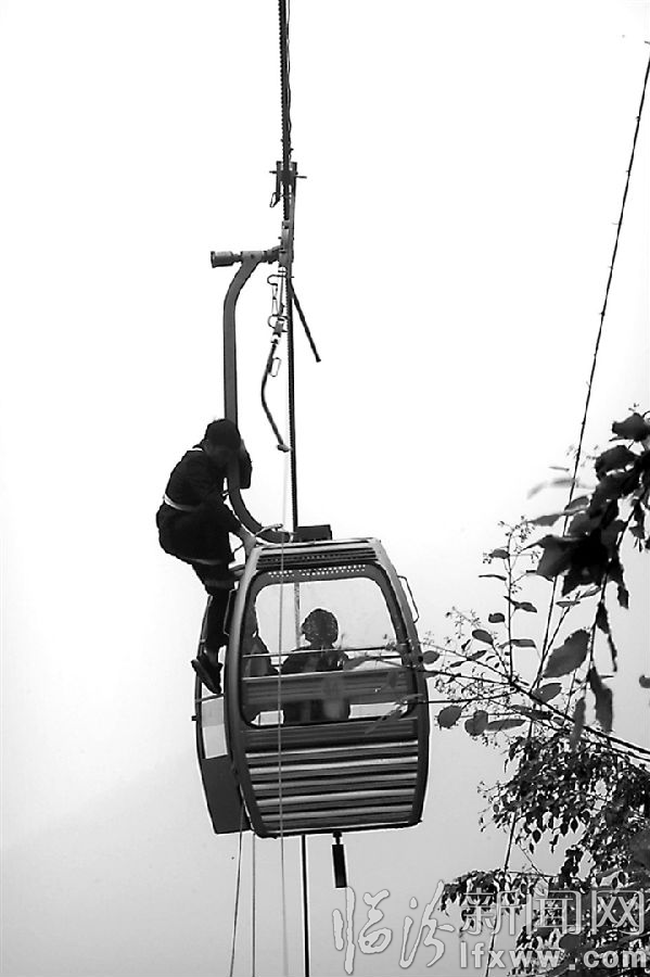 临汾新闻网讯 4月25日,乡宁县云丘山旅游风景区温度适宜、空气清新,青山叠翠间有轻雾缭绕,好似到了人间仙境。当日一大早,不少游客结伴前来游山玩水,沉浸在云丘山的秀美风光中。然而天公不最美,下起雨来,游客乘坐的3号索道在运送游客途中突然停车,两名女游客被困吊厢中,现场气氛骤然紧张起来。