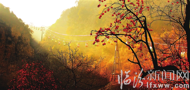 远山、秋林、小溪,有“河汾第一名胜”美誉的云丘山,此时漫山绿色正渐渐转红,一簇簇,一团团,层林尽染,醉了观景人。(本栏图片由云丘山提供)