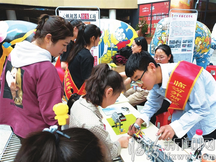 职教周期间,市并丽通职业学校的师生走进小区,为孩子们讲解机器人制作知识。 常益杰 摄