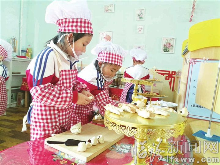 临汾新闻网讯 乡宁县下园子幼儿园坚持“多一些游戏,少一些灌输,让孩子快乐成长”的理念,开办了丰富多彩的园本课程体系,发展儿童智力和动手能力。图为儿童体验花馍制作。