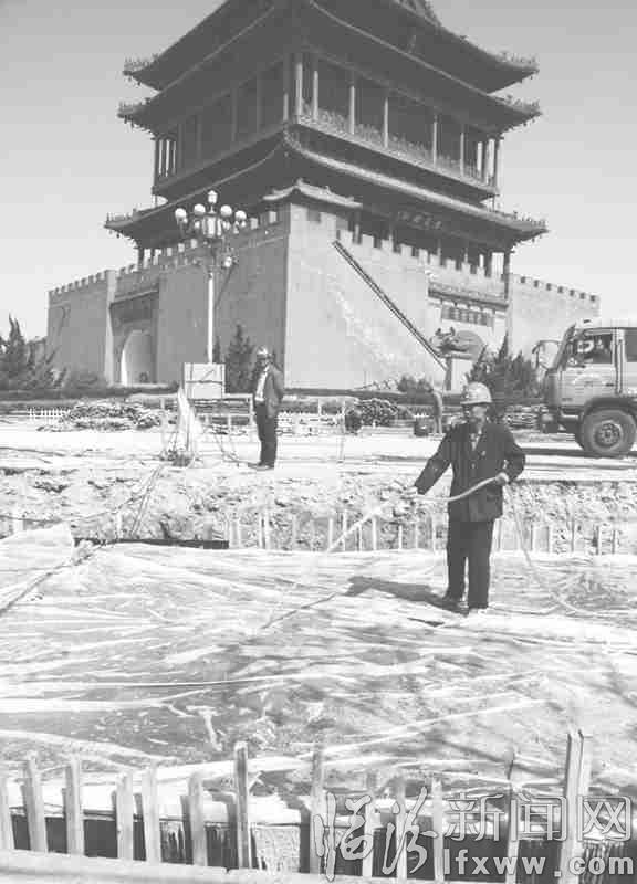 4月18日,记者在环鼓楼综合管沟施工现场看到,施工人员正在对已经建好的综合管沟进行洒水养护,综合管沟启用之后,沿鼓楼铺设的各种管线将会全部架设到综合管沟里面,有利于后期的管理和维护。