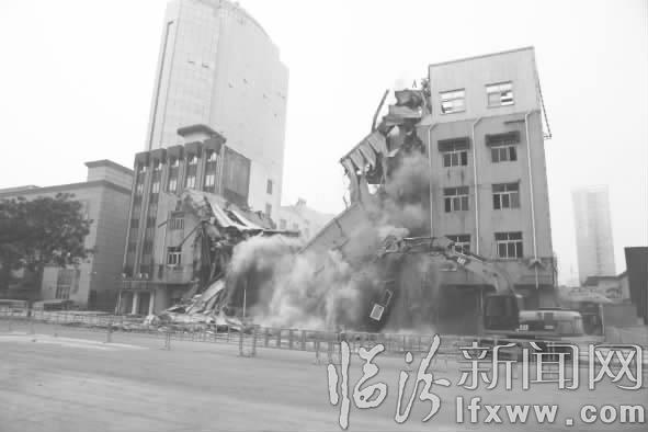 临汾新闻网讯 6月2日,记者在鼓楼南北街拓宽改造工程拆迁现场看到,随着大型机械的不间断作业,市交警支队南城交警大队办公楼很快被拆除了。