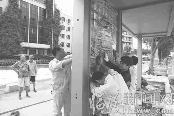 据了解,第一批安装的公交站亭共34座,目前主体安装全部结束。据工作人员介绍,公交站亭的材质采用的是不锈钢烤漆,具有耐腐蚀、易清洁的特点。记者 田志华 摄