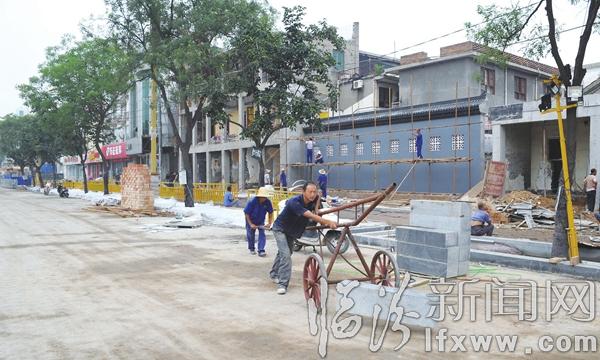 临汾新闻网讯 连日来,在市区鼓楼南北街拓宽改造工程现场,工人们正在冒着酷暑加班加点工作,对人行道、隔离带的侧石进行铺装,确保早日完工。