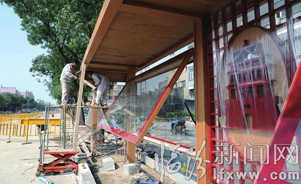 临汾新闻网讯 连日来,在鼓楼南北街拓宽改造现场,工人们正在对公交候车亭进行安装。公交站亭是城市的窗口和名片,鼓楼南北街拓宽改造期间,我市对公交候车亭的设计凸显了鼓楼特色,独具特色、古朴典雅的公交站亭既彰显了城市历史文化的独特魅力,又与周围街景的景观协调配合、相得益彰,将进一步提升我市城市品位。