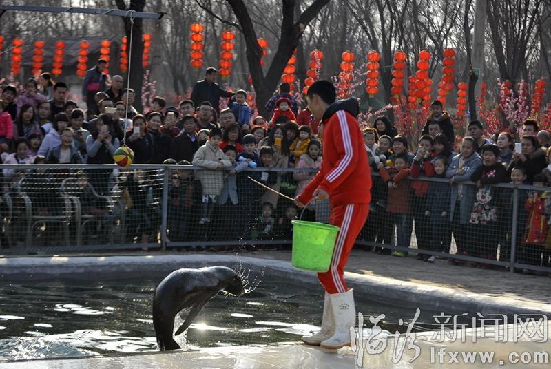 临汾新闻网讯 新春正月里,临汾市动物园举行了丰富多彩的民俗表演和游园活动,通过非遗民间艺术展演,晋北二人台以及海狮表演等活动,在广大市民的互动参与中,感受浓浓的年味。 本报记者 闫锐鹏 摄