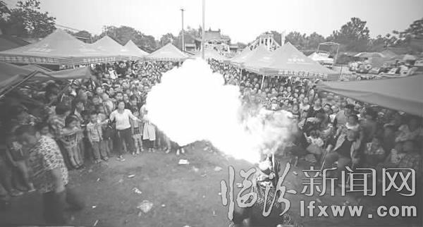 “舞龙灯是我们村的一项传统民俗,历史十分久远,可以追溯到帝尧时期,而且我们村的龙灯跟其他地方不同,我们村为水龙,夜晚舞起来,龙目灯光闪耀,龙身火焰跳动,活灵活现。”夜晚负责舞龙灯的当地村民侯金管介绍。