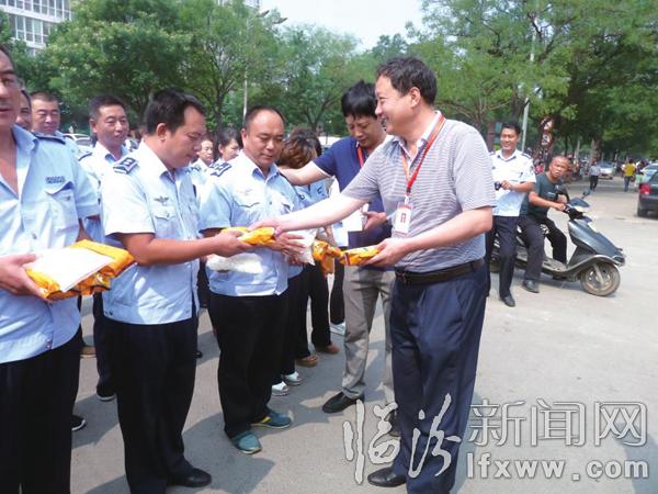 临汾新闻网讯 近日,尧都区乡贤街办事处党工委组织班子成员、商会企业家、在职党员深入脸谱大桥,看望慰问了在酷暑下仍坚守一线的市容监察支队南城大队执法人员,为他们送去了防暑降温用品,表达党工委和商会对执法人员的关怀。