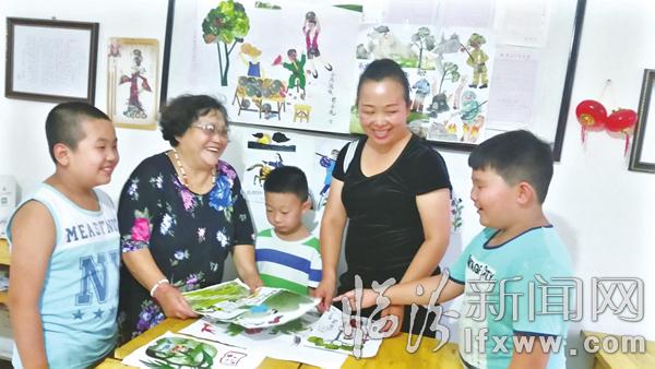 临汾新闻网讯 “放牛郎王二小”“女英雄赵一曼”“刘胡兰”“鸡毛信”…… 近日, 居住在尧都区警苑小区的荀金花老大娘创作了一系列抗日题材的剪纸贴画, 在邻里之间传阅着。老人说, 希望抗日题材的剪纸贴画让大家铭记抗战历史,珍惜和平生活为振兴中华努力奋斗。图为老人为孩子们讲剪贴画的制作工艺。记者 刘晚摄
