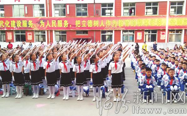 临汾新闻网讯 10月13日,在第66个中国少年先锋队建队日到来之际,尧都区乡贤街小学举办了“开启希望承载梦想”教育成果展示汇报活动,一年级的小学生以整齐的路队和广播操进行了汇报表演。