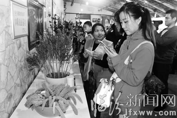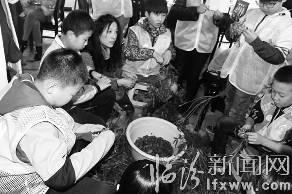 活动现场,家长和孩子们一起识别农作物。